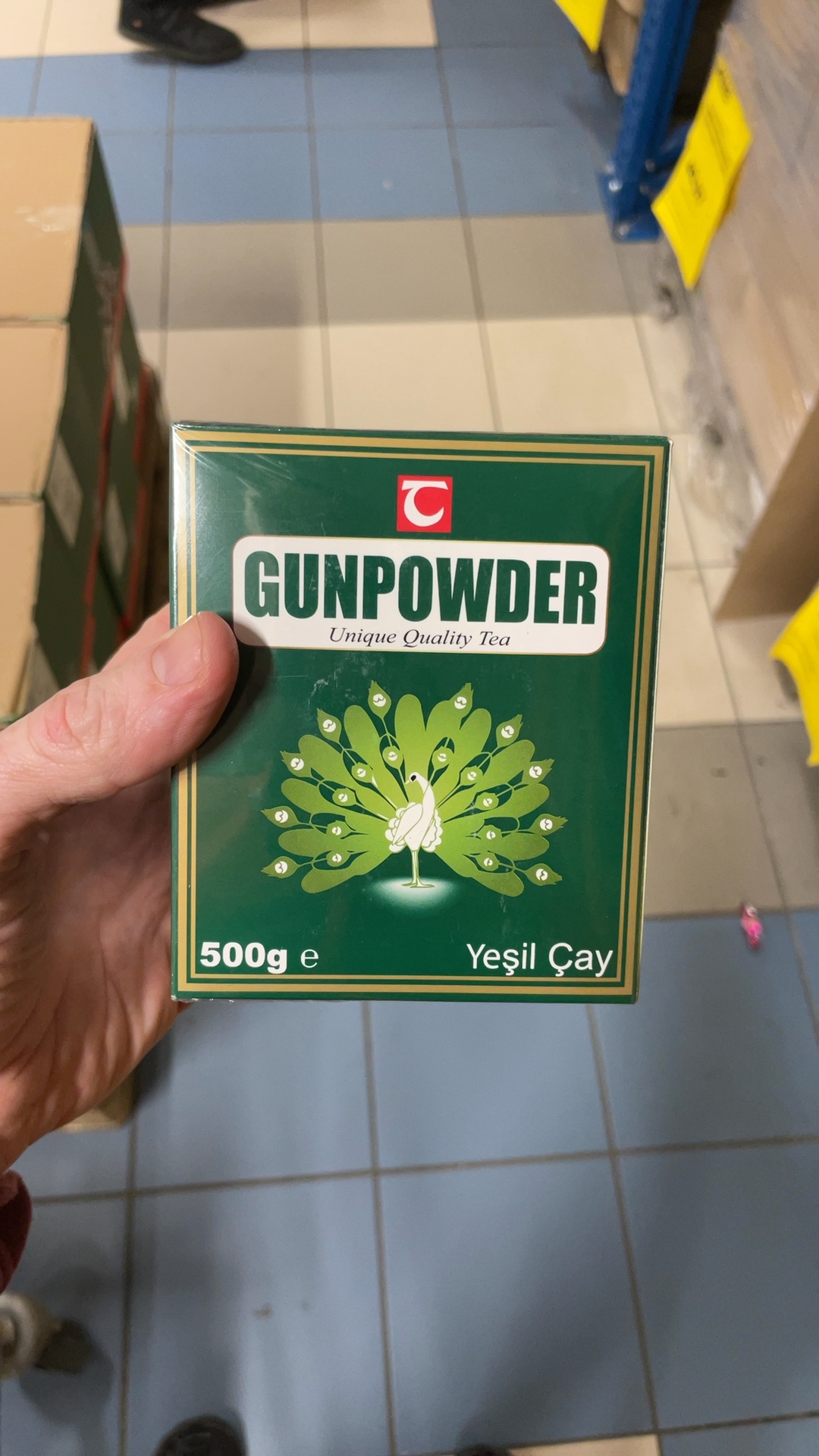 Označení 'Yeşil Çay' na obalu znamená 'Zelený čaj' v turečtině, což naznačuje, že produkt je distribuován v turecky mluvícím regionu nebo je určen pro tento trh.